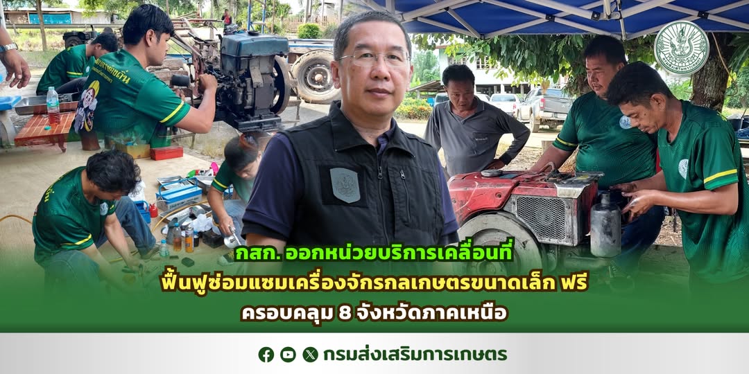 กรมส่งเสริมการเกษตรออกหน่วยบริการเคลื่อนที่ ฟื้นฟูซ่อมแซมเครื่องจักรกลเกษตรขนาดเล็ก ฟรี ครอบคลุม 8 จังหวัดภาคเหนือ